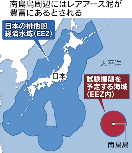 小笠原諸島の南鳥島(東京都)周辺の日本の排他的経済水域(EEZ)で2026年1月から「レアアース(希土類)泥」を試掘する取り組みが始まる。